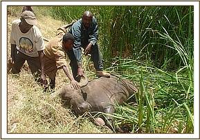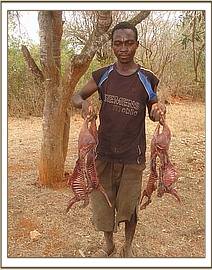 TRIANGLE ENCOUNTER The Chyulu team leader, James Mbuthia, made an impromptu visit to the Kaluku base for an official assignment. On the way he came across 2 poachers crossing the road with bush meat. Together with the Mtito team leader they were able to catch up with the poachers and arrest one of them who was in possession of 4 dead Dikdiks. The poacher was booked at Mtito Andei police station.
