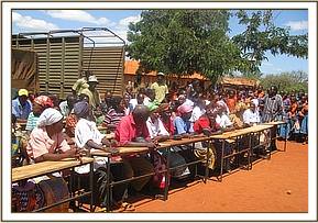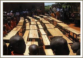 During the month of may this school received donation from the Trust that exceeded 120,000/= Kenyan Shillings in value. The school was given 30 desks valued which are of good quality & manufactured in Voi which supports local businesses.The entire community including the area chief attended the donation day , the need for conservation was emphasized. The donation came at the right time when the pupils needed seats. Some were sitting on bricks and logs. This will boost their learning environment and build a strong relationship between the de-snaring team & community. The community was very grateful and promised to support our conservation cause.