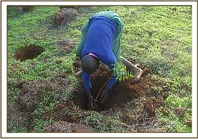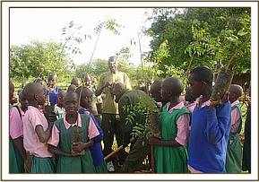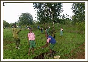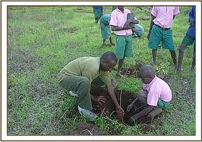 TREE PLANTING The planting of tree seedlings was done in two schools both of which are rather barren and have little shade. The pupils were shown how to plant and tend to seedlings thus getting them involved in conservation as they are the future custodians of the environment.