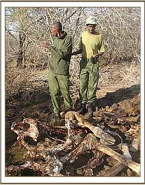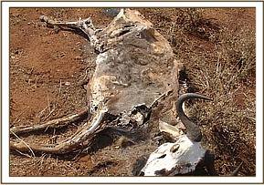 The patrol of the above areas was aimed at eradicating snaring, lamping (use of torches and pangas), as well as the poaching through the use of bows and arrows. Poaching in this area is purely for commercial purposes and with a ready market at Emali town and its environs. The mushrooming development of the town has drawn a lot of people from various parts of Ukambani putting pressure on the ranches as alternative sources of cheap protein. The proximity of the ranches to the town makes it easier to access and kill animals. The team relied on intelligence information from informers about the most frequented routes as well as the poaching hotspots. Most of the paths normally used were ambushed at night to avoid detection during the day. The vehicle was not used during the patrols because the wilderness was flat and with few isolated trees which allows the poachers to easily sight animals and see anyone coming. During the patrols the team found the main lugga where animals are slaughtered and we saw many heads of dead zebras, Thomson gazelles, Hartebeests, and Elands.