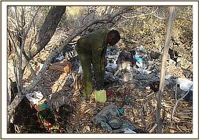 The patrol was also aimed at apprehending those involved with all illegal activities. The main poaching tracks were identified and followed. A lot of dead animals were seen especially zebras which had been shot with arrows and the wounds could be clearly seen. The team kept pressure on the hotspots and deterred poachers from accessing the Kiboko river stretch. The team discovered a wood carving hideout and destroyed it completely. The gang provides materials for wood carvers near Hunters lodge.