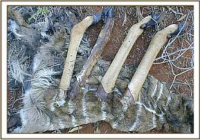 Observable evidence. During the months operations we observed various things. At Ngutuni we found 2 Lesser Kudu skins and the lower parts of the animals limbs all had cut marks. We also found an Impalas head and lower limbs which also had cut marks on them. This shows that there is active poaching taking place in the area.