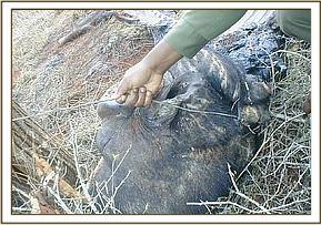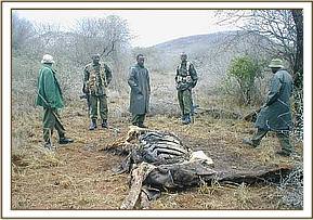 Lualenyi/Salt Lick The level of snaring in this area is alarming with a total of 86 snares being lifted. We believe that the perpetrators are practicing shifting poaching whereby they shift from one area to another as soon as they realize that there activities have been noticed. During our patrols we came across the carcass of a dead giraffe and a dead buffalo.