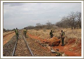 Sagala ranch / Westerman area This ranch is very important as it is a migratory corridor for animals moving not only from Tsavo East to Tsavo west but also to Tanzania. For this reason the Burra desnaring team increased its patrols in the above areas. We were able to lift 60 snares, 10 of which targeted large game, with 50 targeting small and medium sized game.