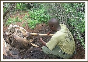 Mbulia Ranch Mbulia is a group ranch which is located south of the Mombasa road and East of Tsavo West National Park. The ranch is of large and poorly managed. The vegetation is bush thorny acacia and commiphora which creates a good habitat for small game like Dikdiks. Currently the ranch ahs a lot of thick foliage due to the high grass and sprouting bushes which makes it difficult to see. During our patrols we managed to lift a total of 43 snares 5 of which targeted medium and large game with 38 targeting small game. We also came across the carcass of an elephant. This time the tusks were intact.