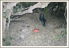 Evidence of poachers. At Gulalo we found 7 hideouts that contained fire points. In these hideouts we found bones