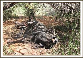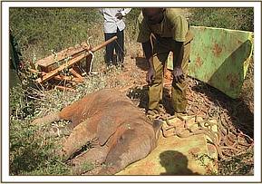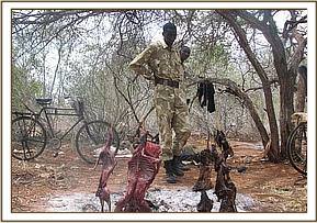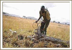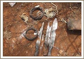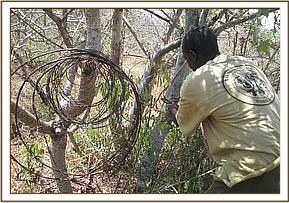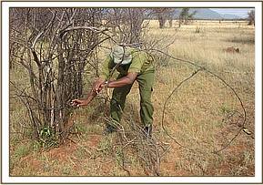 Ngutuni Ranch. This ranch is in the vicinity of Tsavo east National park headquarters near the Mombassa road. After patrolling this ranch and adjacent crop land we managed to lift a total of 26 small game snares and 6 big game snares.
