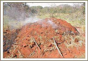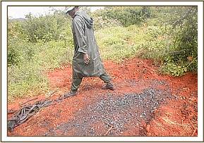 Manyani / Tsavo River Snares targeting small game were lifted in this area. The snares were found in close proximity to the road and we suspect that the residents of the Manyani market center were responsible for setting them. The team also came across remnant charcoal kilns.