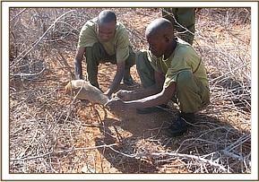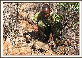 Lion hill area Just outside the Tsavo east gate at Lion hill, 16 snares were recovered which were freshly laid. All of the snares recovered were medium sized. These snares were found in the area between the park access road and Voi River which is a regular spot for herds of impala and other game. On the other side of the road adjacent to the Lion hill, a foot path was found entering the park through the fence heading towards Voi safari lodge area.