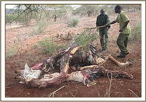 The patrols started at the area adjacent to the park. Ngutuni ranch recorded no new activity, though one bull elephant carcass was found and its tusk were missing, through the information of a local informer the poachers used poisonous arrows to kill the elephants and sell its tusks at Mombasa town.