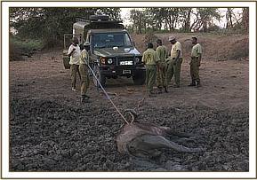 Buffalo Rescue The team together with a keeper came to the aid of a buffalo that was stuck in the mud at the Lualenyi ranch dam.