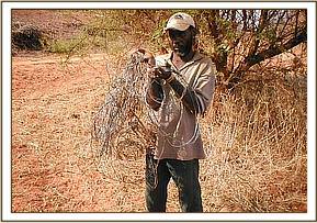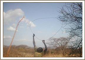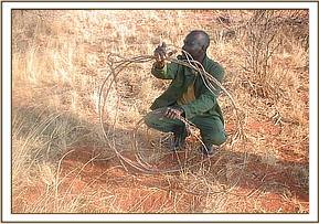 We tried to gather information about poachers by carrying out our investigations in the ranches and community areas. We approached the community elders in our efforts to gain information so as to better aid us in our efforts in curbing poaching. We got a warm reception from a lodge manager in Ngutuni; with his help we were able to arrest a poacher in possession of 89 snares