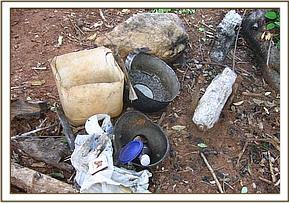 At Kyae rock a footprint was noted which we followed. No illegal activates were found. We then moved our operations to the Tundani area were a set of footprints were seen leading to the swollen Tiva River. We were able to life 106 snares along the Tiva river bank. The poachers have taken advantage of the fact that the area has become inaccessible due to the stagnant runoff onto the road, and have increased their poaching activities. We also came across a hideout that had fresh blood stains and animal fur.