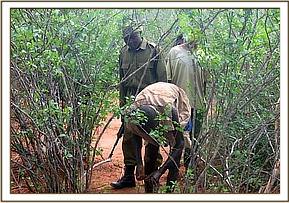 The first four days we set up observation points as the Kimathenya hill which enabled us to monitor the poaching activities taking place along the fence line. We sighted one poacher around the Kalovoto Lagga and were able to track him with the help of the dog unit. Unfortunately it started raining heavily and the dogs lost the poachers scent.