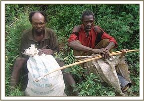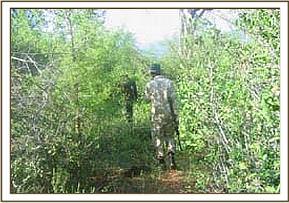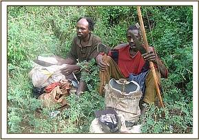 Buffalo bent During the second week of our operations we combined road clearing supervision with our desnaring activities. On the first day of our patrols we arrested two poachers just after they had crossed the river into the park. The poachers were in possession of 2 knives, a panga, bows, two poisoned arrows, axes and other personal items.