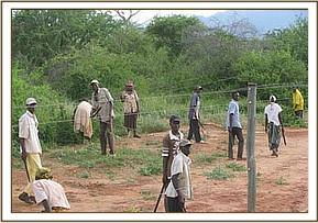 COMMUNITY OUTREACH PROGRAMME During one of our visits to the community, we came across an elephant poacher whom we had arrested sometime ago, he was out of jail and spoke to us honestly about he and other poachers are tempted by the current good prices of ivory in the market. So while we intensify the patrols inside the park, the market chains also need to be dismantled and destabilised in order to have an impact. On one of the community visits at the Kimweli area, we came across a poacher who was carrying poisoned arrows. He tried to hide them under his inside his coat by putting them under his arms but they were still protruding from the bottom of his coat.