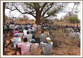 During the third week of August the Team held a series of Community awareness activities. On the 18th of Aug a meeting was held with Kavete Primary School Head Teacher who has been very accommodating and active in Environmental Education in this school. Our combined efforts have swept a wave of positives change through the surrounding community particularly in Kimweli village. This village has many notorious poachers residing in it and it has been very difficult to make a change here regardless the support we gave the Kimweli Primary School. Thankfully our efforts have finally paid off, as poaching levels from this area have decreased. The team also held a meeting with local area chief and the Warden of the Northern Area of Tsavo East to encourage support for the campaign against poaching. Other local chiefs attended and the general outcome of the meeting was very positive. The government has been trying to encourage local chiefs and their performance contracts target to reduce poaching by 60%. Sp far only the Kasaala chief has managed to reach this target, the rest of the chiefs actually encourage poaching.