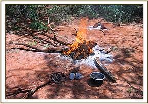 Our patrols this month only took place over a period of 10 days as the Rangers were needed elsewhere. At Tundani and deep in the park we have found that the poachers have set traps at the water holes and have erected shooting platforms. Unfortunately they left the site together with all their catch a day before we arrived.