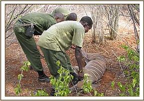 The year of 2008 ended on a sad note when we discovered that an elephant poacher shot an arrow at one of The David Sheldrick Wildlife Trusts ex-orphans who is now in a wild herd. Fortunately the orphan made a full recovery after being treated by the Trusts Staff. The Ithumba desnaring team investigated the incident and early this year the whole story unraveled. A reliable source has led us to believe that the now wild elephant orphan stumbled upon the poacher’s camp in the National Park and seeing the orphan was young and hence barely had any tusks the poachers shot the orphan in order to chase it from their camp. The good news is that one of the poachers from that group who shot the elephant was killed on the 19th of January 2009 when he attempted to shoot KWS Rangers while on their patrol. The poacher killed was in possession of a G3 Gun which we have been trying to trace since 2002.