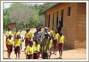 Due to the rains the 2 school trips that were postponed in November 08 took place in the last week of this month. The 1st school taken was Little Angels Academy Ikutha. The kids could not hide their excitement throughout the day. They were collected at 6am; some of the parents confessed the excitement was so high that the children were unable to sleep the previous night getting up as early as 4am to prepare for the trip. Our first stop of the day was at the Park Headquarters where we arranged the park entrance fees which have been increased this year. The students were thrilled to see some of the sights in the park and learn about the wildlife and the threats of poaching. At Luggard Falls we watched a herd of elephants and their calves; we also saw some crocodiles and hippos.