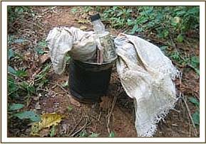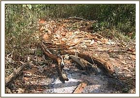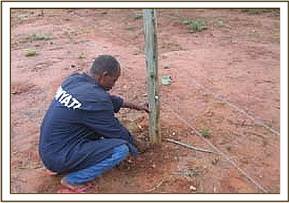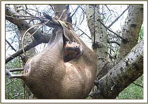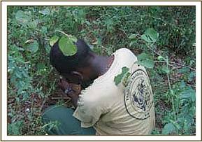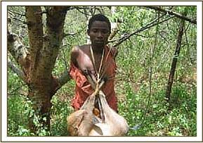On the 22.3.07 we moved our de-snaring activities to Kimanthenya hill near the Kanziko gate where we came across fresh poachers footprints. Upon following them we found a dead bush Duiker that had been hung on a tree.