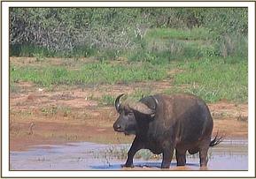 On the fourth day of our operations we moved to the Gazi area. On the way there we encountered a lone buffalo that was wallowing in a waterhole at the junction to Nthalakana.