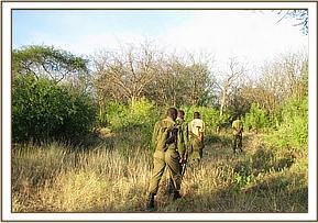 Sheldrick blind, Kiasa The team patrolled these areas and once again came across several footprints. The footprints were followed for a whole day. They led the team deeper into the park past Kiasa hill. We continued to follow the footprints the next day and were able to lift two snares that targeted large game such as buffaloes and elephants.