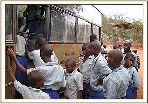 During the ecological trip the students saw herds of elephants, buffaloes, and giraffes. They also saw baboons, jackals, impalas, warthogs, lesser kudus, lions, dikdiks, waterbucks and a cheetah.