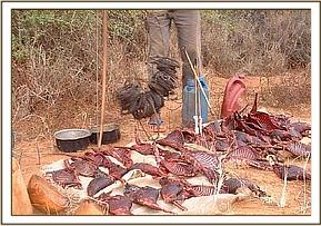 During this month, a joint operation was launched on various areas. Umauma and the power line yielded the highest number of snares with a total of 489 altogether, all of which were targeting smaller mammals. We also discovered and destroyed two slaughtering dens and two hideouts. We laid an ambush on one of the hideouts and arrested a poacher with 6 Dikdiks and 92 snares. He also had in his possession a gin trap (a chain that is designed to catch larger animals such as lions and leopards.) Mathae and Kalovoto were characterised by fresh human foot prints going in and out of the park and we collected 256 snares, it is obvious that poachers are now visiting their snares on a daily basis. Another well known poacher was arrested with two DikDiks and 65 snares in his possession all for smaller animals. The two arrested poachers turned out to be brothers and have been known to poach in the park for many years.