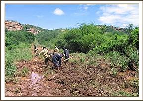 Due to the fact that it is the rainy season the levels of poaching have decreased as the poachers are busy cultivating their farms. On the 14th of the month the fence attendants reported that, due to a heavy downpour the night before, the fence had been washed away at the Kalovoto stream near the Kimweli gate.
