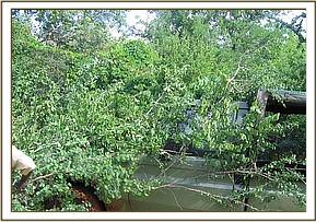Some of the sections of the road have been blocked by fallen trees. The team worked on removing the trees from sections that were not waterlogged.