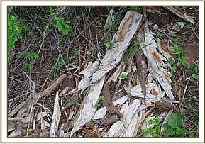 Mathae, Kalovoto, Kanziko, Lagga-kuggu areas At Mathae there is open ground stretching up to a mudbath. This area is a snaring hotspot and the months patrols and not complete without carrying out patrols in the area to lift any snares that may have been set. The team as able to lift 24 inactive small snares. We also spotted some footprints which we found out belonged to a honey hunter. Another set of footprints led us to an area where building posts had been cut.