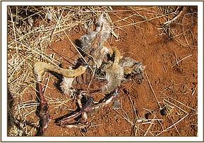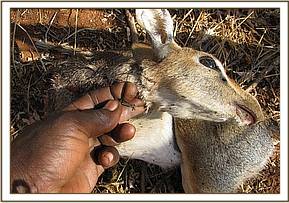 Patrols at Kanziko, Umbi, and Lagga-kugu The fence attendants informed the team that they had seen some footprints along the Kanziko fence line. The team tracked down these footprints and lifted 110 snares targeting small game. Another dead Dikdik was found. At Umbi the team tracked fresh bicycle tracks leading out of the park.