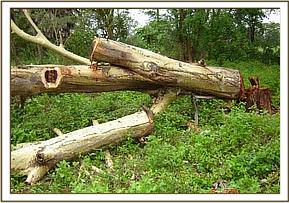 Most of the roads in the areas we patrolled had been damaged and rendered impassable by the heavy rains and the team anticipated that poachers would take advantage this. We began our patrols in the Mangalete area where we lifted three snares and came across the wanton felling of trees by charcoal burners.