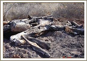 The following day we proceeded to patrol upstream near the Gazi airstrip when along the road we came along fresh foot prints. We followed these foot prints all the way to Muka Meni Village. These foot prints led us straight to a renowned poacher’s home. We surrounded his house, in preparation of his capture as this poacher has proved to be of a slippery nature from previous pursuits. His reaction to being captured and arrested was one of shock and surprise. We searched his home and found a slaughtered Dikdik and poaching equipment.