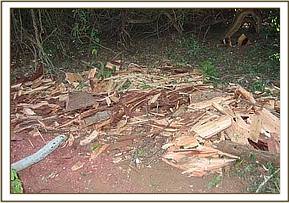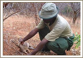During the 2nd week we started our de-snaring operations. We began our patrols at Mathea which is near the park fence line. We were able to lift 26 snares that targeted small game and saw foot prints that lead out of the park. An old and disused poacher’s hideout was discovered by the team in the Mathea area.