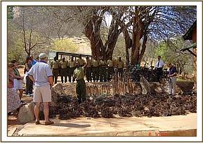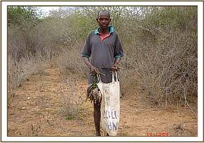 A few days later we embarked on a detailed de-snaring programme. We began our patrols at the Sheldricks blind area where we discovered old snares. There was strong evidence of elephant poachers who were operating from the top of the rocks targeting elephants as they came to drink from the spring water below. In the area near Tsavo Safari camp we came across a dozen snares which generated a lot of heat especially from the camp employees. There was also litter all over the nearby bushes which was a sign of neglect and poor management by the camp. We felt that the camp which relies on wildlife base tourism ought to take conservation of both the environment and wildlife more seriously.