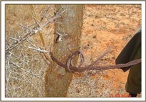 Tsavo River We patrolled this area for a period of eight days. This area is not only a sensitive area, due to the surrounding communities, but also a poaching hotspot. Poachers operating in this area target animals for bush meat, and elephants for their ivory. Cases of armed poachers operating in the area have been reported to the team and to the Kenya Wildlife Service. During our patrols we tracked the footprints of three poachers along the river bank and were able to lift 23 snares all of which had been recently set, which is another indication that poaching is an ongoing problem the Tsavo River.