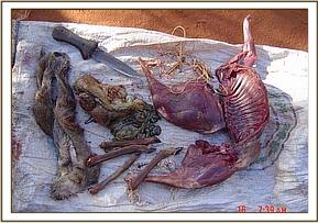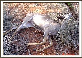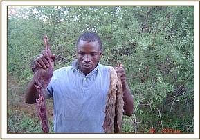 At Maktau and Oza ranch we saw a high level of poaching taking place. The area yielded many snares as well as snared animals. We found a dead lesser kudu still in the snare and found drying lines containing bush meat.