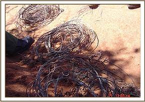 During our desnaring operations at Kishushe we arrested one poacher who was in possession of bush meat and 6 snares.