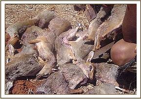 Kishushe Park Boundary Following information from our informers we carried out an ambush in this area. Since our de-snaring efforts started two years ago snaring in the area has declined. Unfortunately the poachers have now turned to night poaching. We were able to follow the poacher’s footprints. Unfortunately all but one of the poachers were able to evade arrest as they were at a higher point and were able to see us coming. We recovered 64 Dikdiks and eight torches which had been left behind by the fleeing poachers.