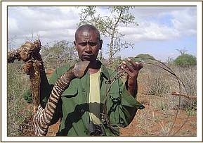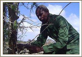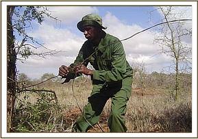 Tsavo River and Mzima springs pipeline Contrary to our expectations there were no poaching activities in the area. This was a change to the past months were a lot of poaching had been observed. We feel that this could be a result of our continuous de-snaring activities in the area. We found that the poachers were coming from as far away as Kambu, Mtito and Kitui and it is possible that our de-snaring efforts had discouraged them as we only found 4 big snares in the area.
