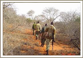 Tsavo River For a period of four days, the team thoroughly patrolled all the dry river beds in the area as well as along the Tsavo River. Footprints from two poachers were seen and followed. We lost the footprints once the poachers crossed over to the other side of the river.