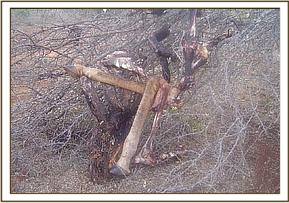 Poachers have taken advantage of this scenario by setting snares to kill animals for both commercial and subsistence purposes. During our operation at this ranch the team lifted twenty two snares all targeting big game and came across several carcasses of animals which included a giraffe, two zebras and one elephant calf.