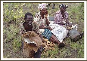 The snares that were set at the Umani Springs camp were found to be concentrated at the periphery of the nearby swamp, which is a source of water for the wildlife in the area. The snares were set along the various trails that lead to the swamp. At a distance of two kilometers from the Umani Springs camp we found an entry route used, on a daily basis, by approximately 10 poachers. At the Kenze and Kinzili hills we found a road which has been forraged by charcoal burners. Lorries have now begun to use this road to access the park, thus further widening it. It was in this region that we found more than 100 sacks of charcoal which had been prepared by the charcoal burners and were awaiting collection.