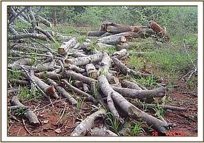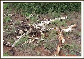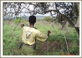At the Maktau park boundary, we observed footprints from 2 individuals. We followed the footprints and were able to lift 2 snares. We also came across a hole that the poachers had covered with logs.