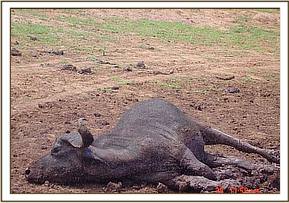 Towards the end of the month’s operations we visited the Lumo Wildlife Sanctuary where no major illegal activities were noticed. We did however come across a pregnant female buffalo that had become stuck in the mud at the dam.