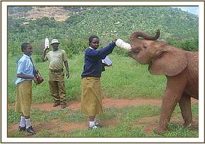 Paranga Primary School had never visited the Park before since the school was started back in the 1980s. The school management praised the Trust for its generous gesture to the school by giving it its very 1st Educational excursion to the National Park as well as the donation of sports equipment for the students. Previously the school had no sports equipment at all; the children and teachers were very excited to receive the sports equipment donation. During the Maktau Secondary trip the students visited Tsavo East National Park and had an opportunity to interact with orphaned Elephants at Voi looked after by The David Sheldrick Wildlife Trust.