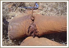 Taita Hills Wildlife Sanctuary Patrols in this areas yielded 14 large snares, showing that there has been a dramatic decrease in the number of snares being set, in comparison to the past two months. This decrease is due to the fact that we made several arrests in the area in the past few months. The Ziwani desnaring team assisted the vet in treating an elephant that had become entangled in a snare.
