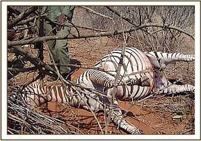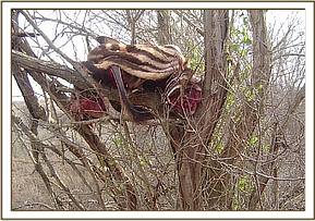 We found that the highest amount of poaching was taking place in the Taita hill ranch and Salt lick areas, and is carried out as close as 5 meters from the main road, and 5 kilometers from Taita hills lodge. The poaching here is for big game. After finding some zebra meat that had been stored up in a tree